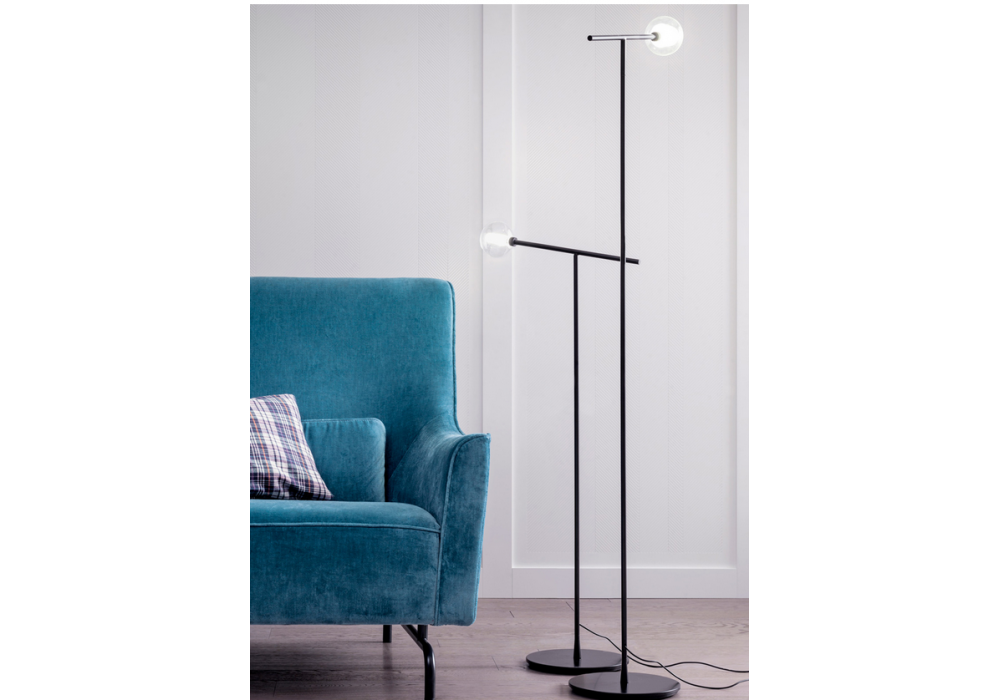Brillo firmata da Alessio Bassan per Capodopera è una lampada da terra a luce diffusa con diffusore in vetro Pyrex trasparente o opalino. La struttura è in metallo verniciato a polvere nero opaco. Dimmer e convertitore a spina inclusi.