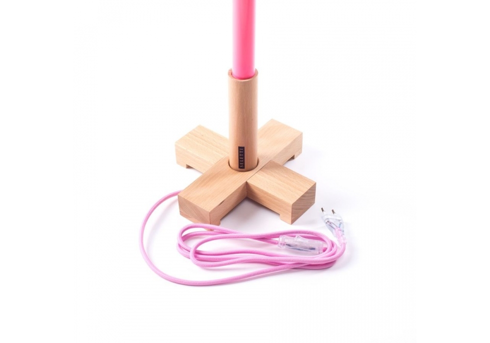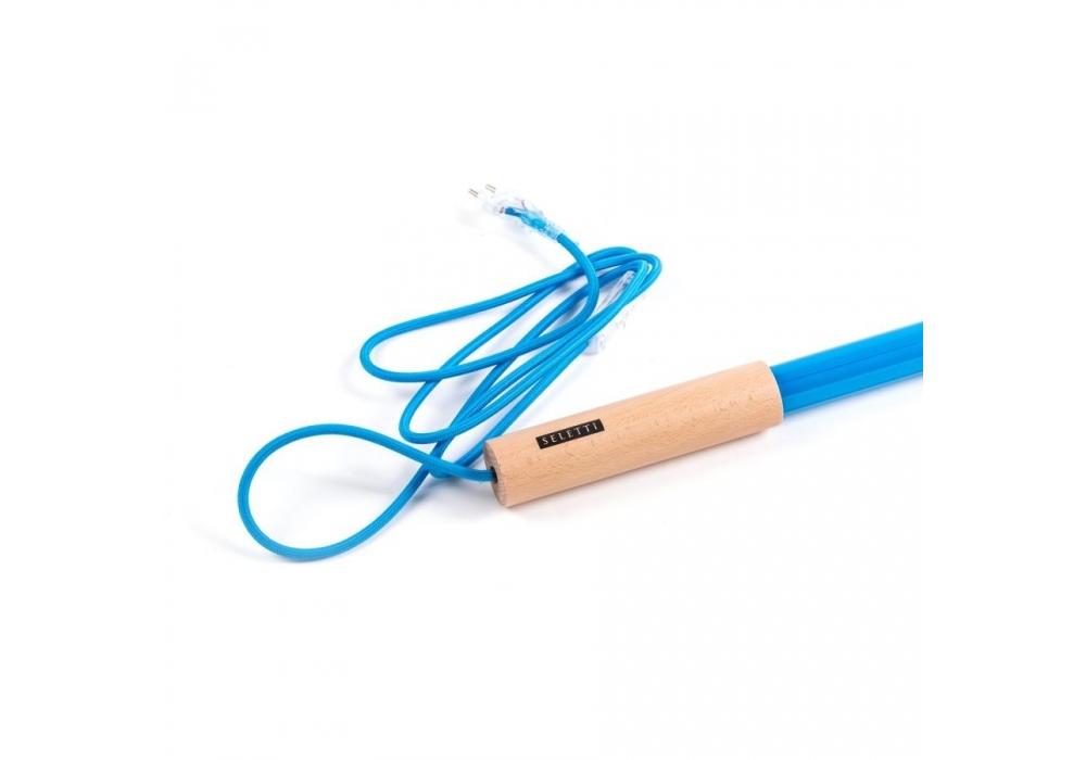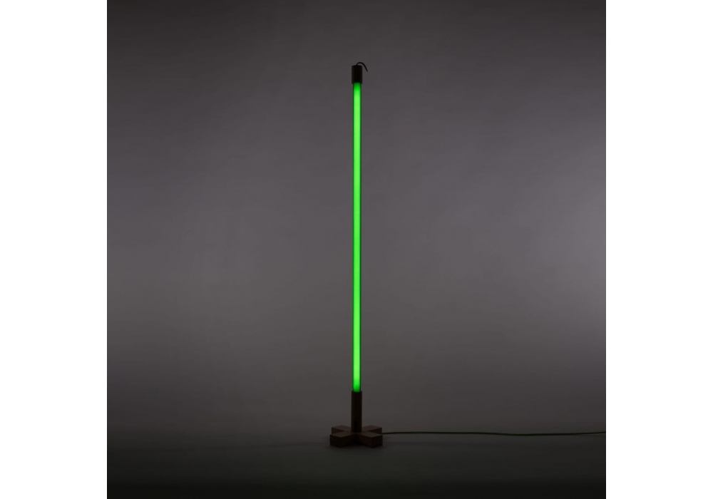 Linea firmata da Selab & Alessandro Zambelli per Seletti è una lampada da terra con base di supporto e manico di sostegno in legno e metallo. Il diffusore è in vetro e scherma una sorgente luminosa di tipo LED. Linea è disponibile in differenti finiture.
