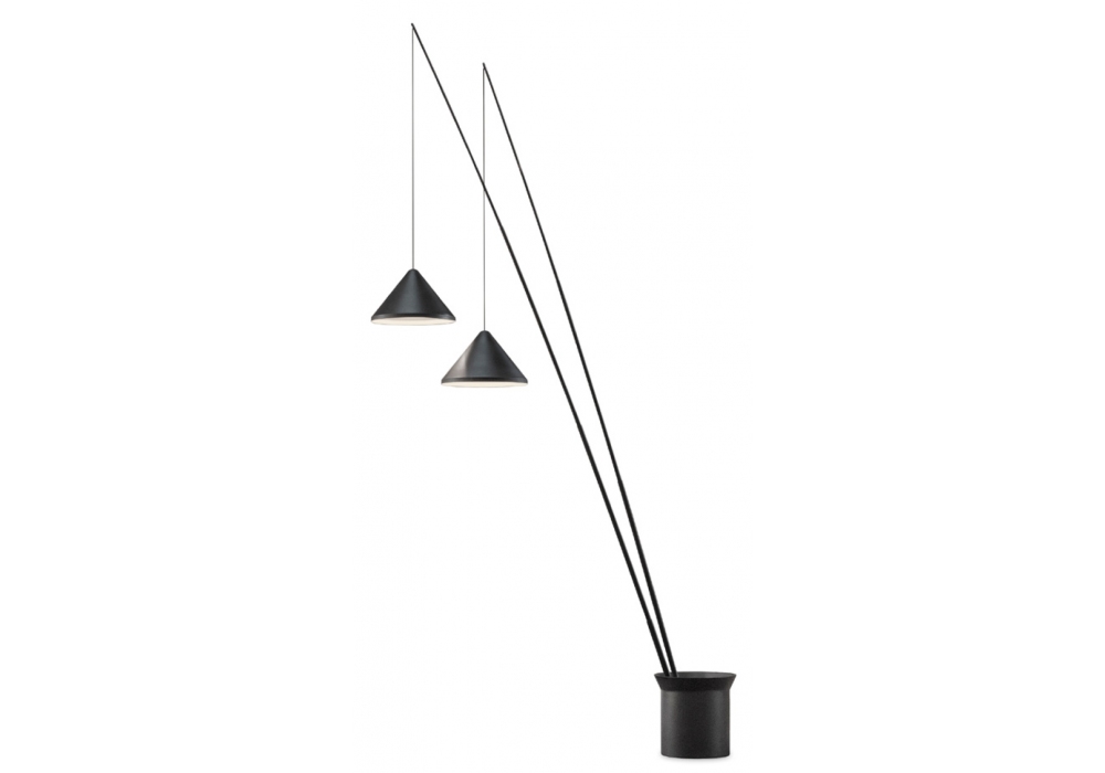 North firmata da Arik Levy per Vibia è una lampada da terra con base circolare in acciaio da dove si diramano diverse aste in acciaio tubolare verniciate. I paralumi sono in alluminio con diffusore in metacrilato e schermano delle sorgenti luminose di tipo LED con switch on/off. North è disponibile in differenti modelli, finiture e gradazioni di sorgente luminosa.