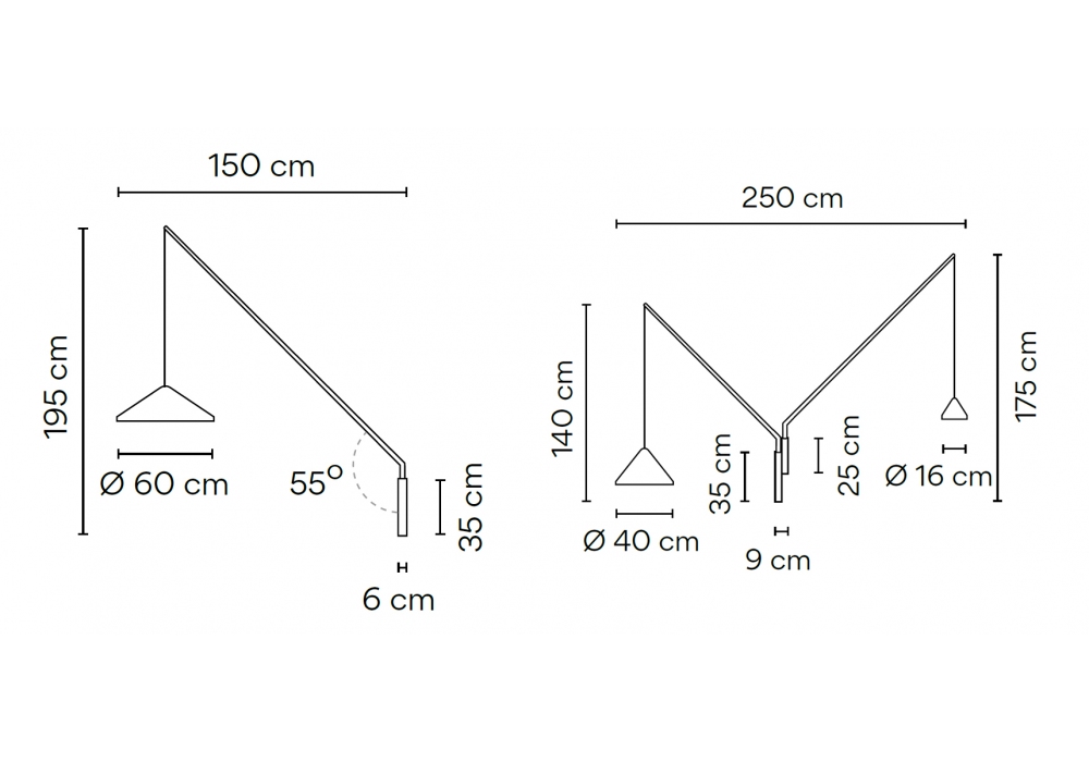 North firmata da Arik Levy per Vibia è una lampada da parete con struttura portante in acciaio da dove si diramano una o più aste in acciaio tubolare verniciato. I paralumi sono in alluminio di forma conica con diffusore in metacrilato e schermano delle sorgenti luminose di tipo LED con sistema di gestione a pulsante. North è disponibile in differenti modelli, finiture e gradazioni di sorgente luminosa.