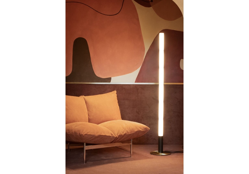 Wave firmata da Federico Peri per Baxter è una lampada da terra con sorgente luminosa a led. Diffusore in vetro. Dimmerazione touch.