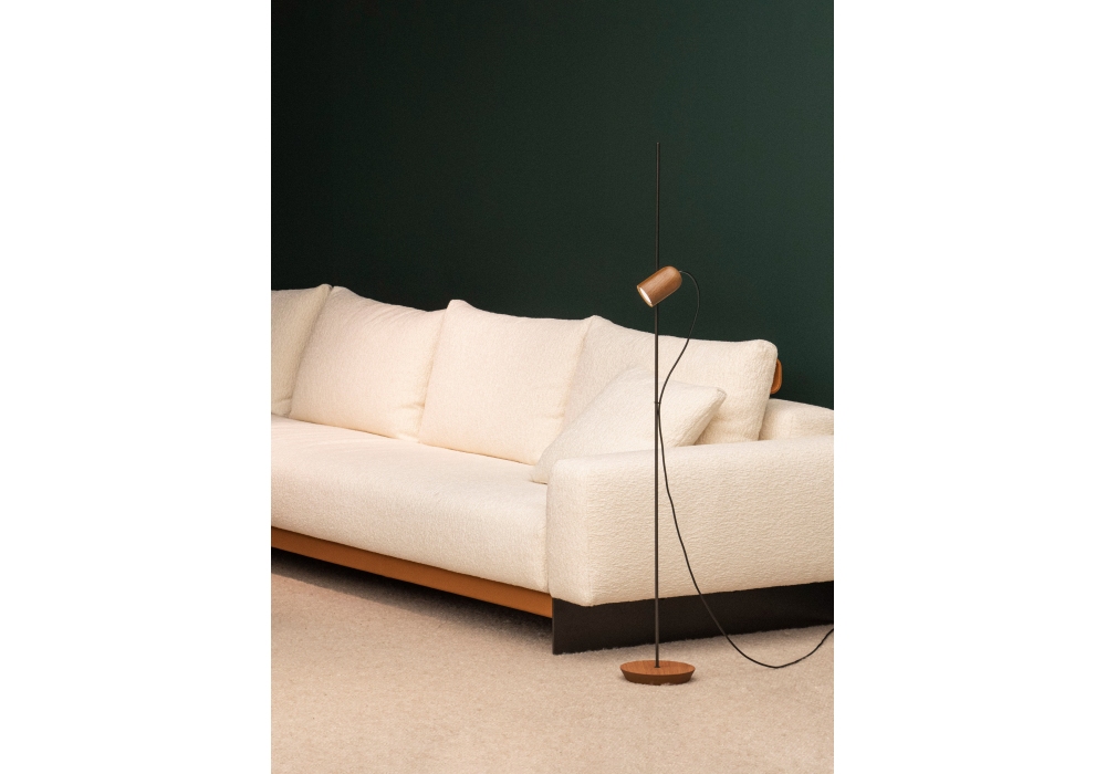 Onfa firmata da Goula/Figuera Studio per Nomon è una lampada da terra con struttura verticale in metallo e circolare di forma circolare in legno. Il diffusore è orientabile di forma cilindrica in legno con particolari in metallo ed adotta una sorgente luminosa di tipo LED con inensto GU10 dimmerabile. Onfa è disponibile in differenti finiture.