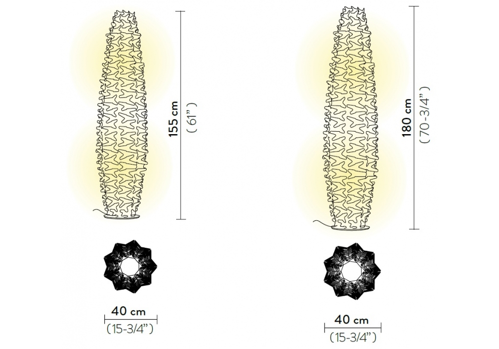 | Dimensioni | • Ø 40 x H 155 cm; • Ø 40 x H 180 cm |