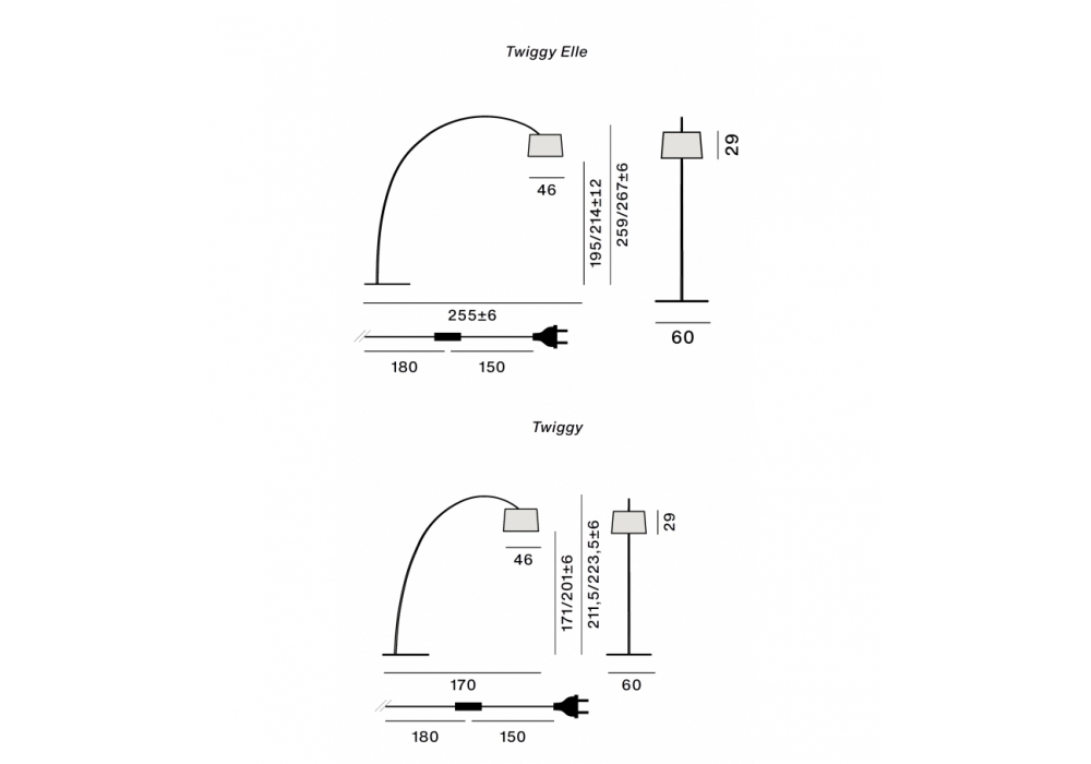 | Dimensioni | 255±6 x 60 x H 95/214±12 cm (Twiggy Elle Rosewood); 170 x 60 x H 171/201±6 cm (Twiggy Rosewood). |