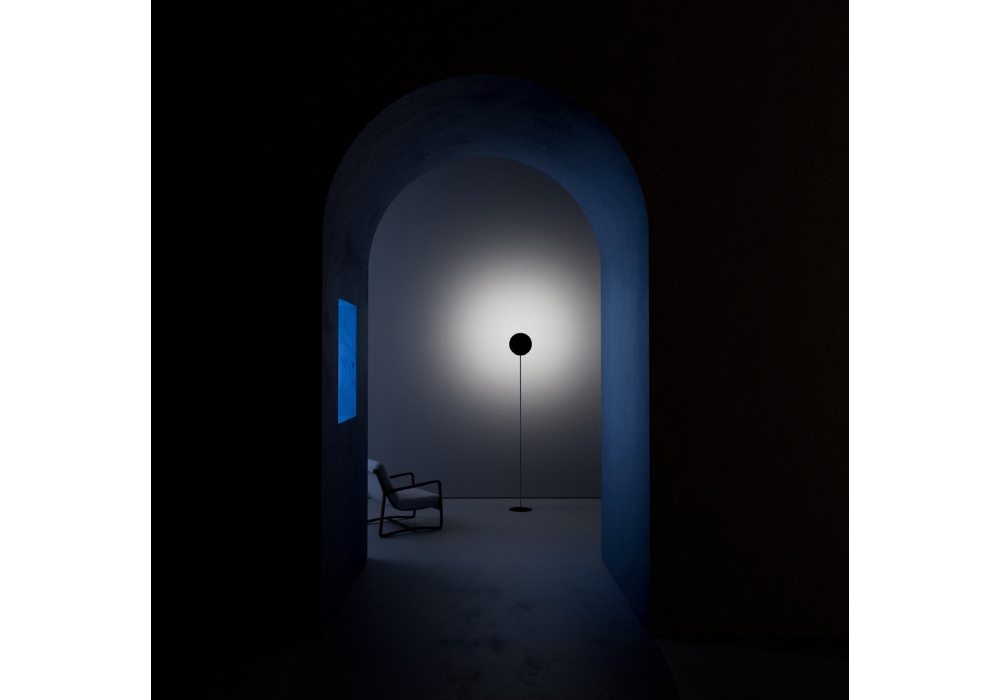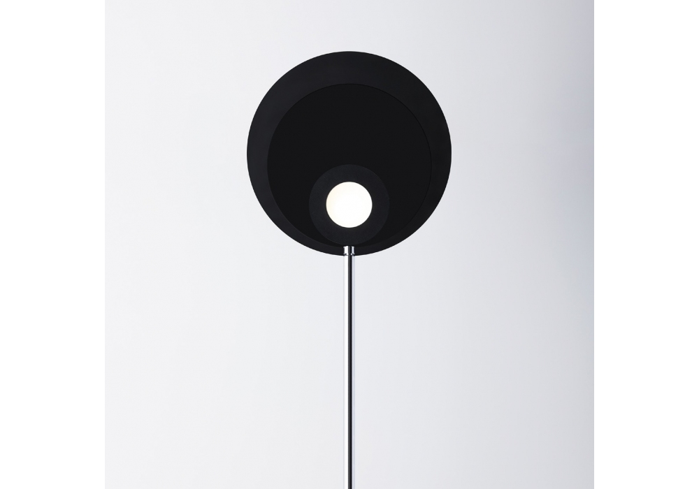 Stop firmata da Davide Groppi è una lampada da terra con diffusore orientabile nero opaco Gravity Black e base nero opaco. Stelo in metallo oro lucido o cromo lucido. Dimmer lungo il cavo. Driver con spina inclusa. Input 110-240V - 50/60Hz Output 24V DC - 36W - IP20.