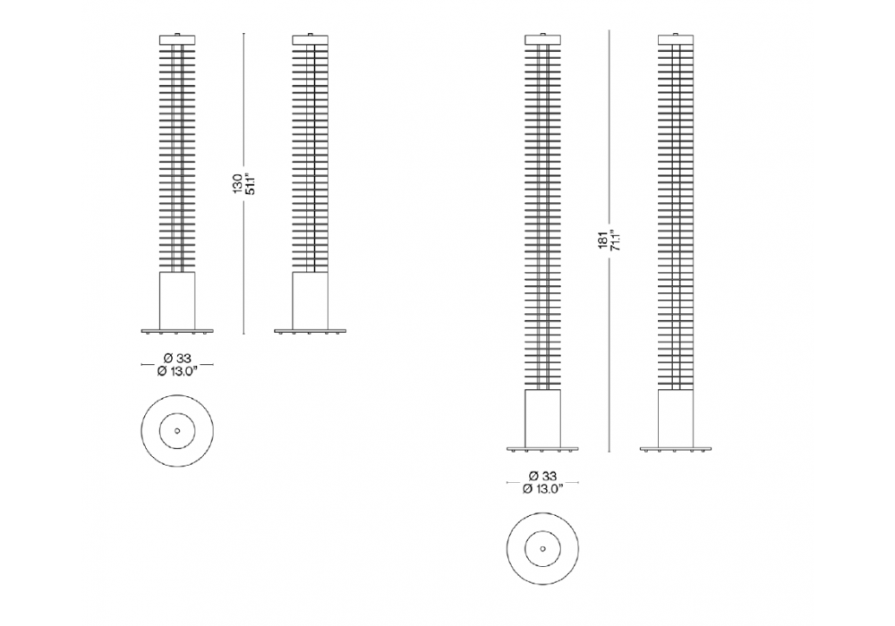 | Dimensioni | Ø 33 x H 130 cm; Ø 33 x H 181 cm. |