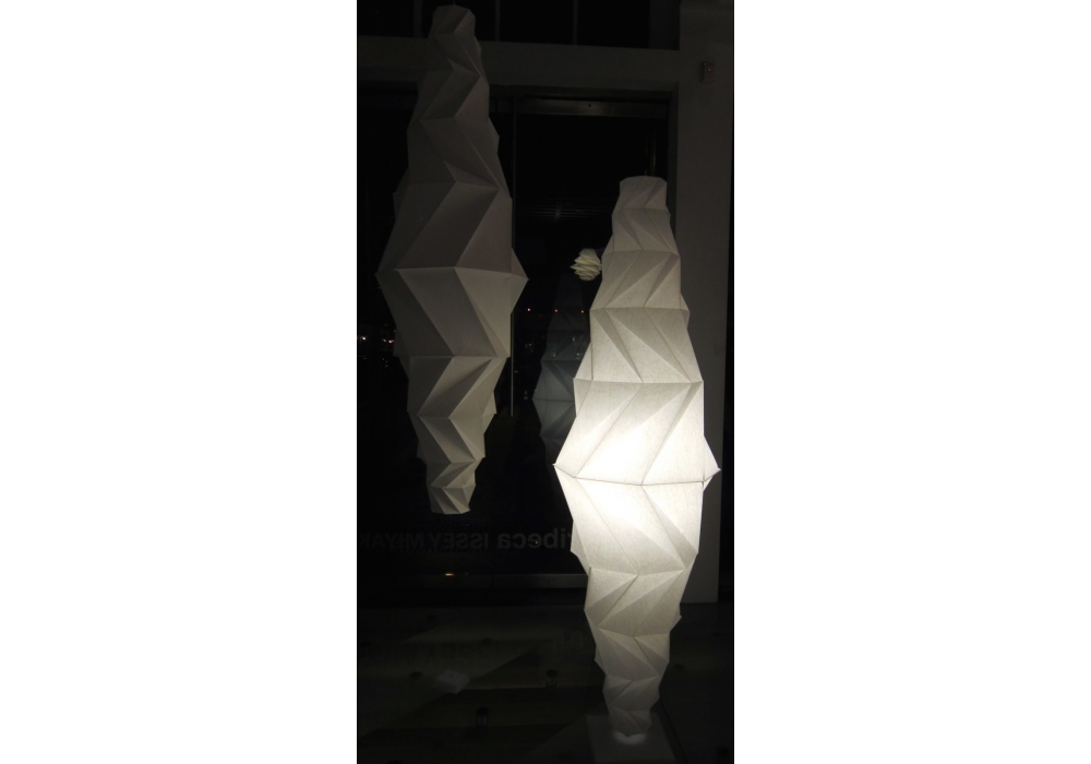 Minomushi firmata da Issey Miyake + Reality Lab per Artemide è una lampada da terra con base quadrangolare e struttura portante in acciaio verniciato. Il diffusore è strutturato da forme geometriche scomposte in materiale plastico bianco semitrasparente e scherma delle sorgenti luminose di tipo LED dimmerabili.