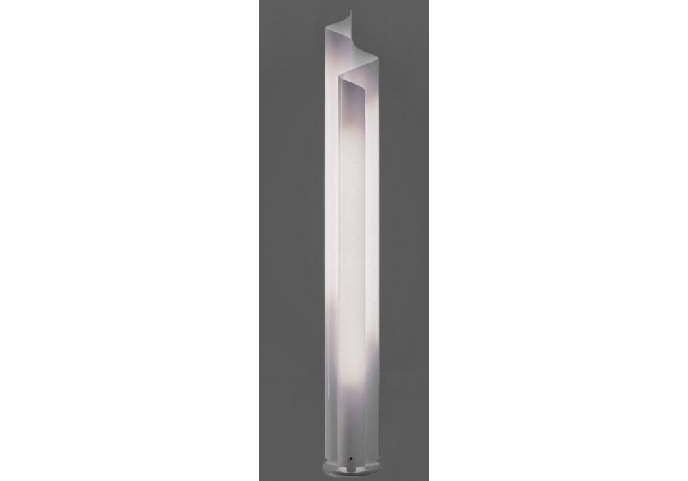 Chimera LED firmata da Vico Magistretti per Artemide è una lampada da terra con base e struttura in alluminio e zama verniciati. La struttura/diffusore è in metacrilato opalino curvato a caldo e scherma la sorgente luminosa a LED.