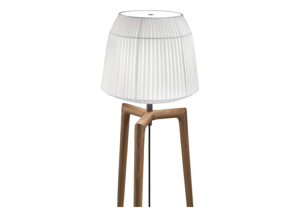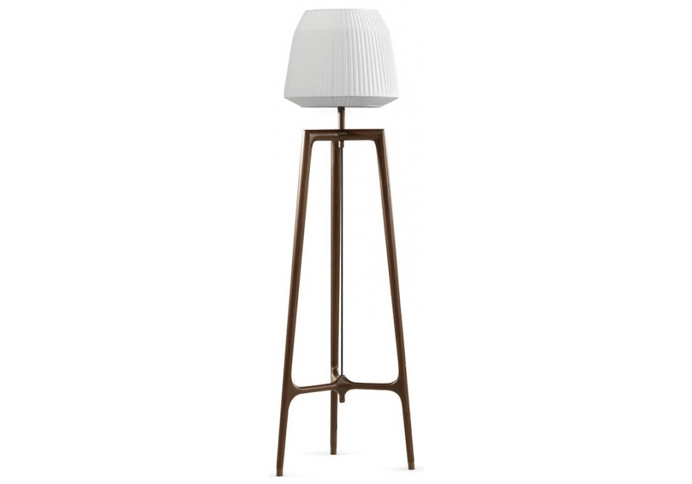 Lampo di Ceccotti Collezioni è una lampada da terra realizzata in legno massello noce americano paralume in tessuto e gambe in ottone.