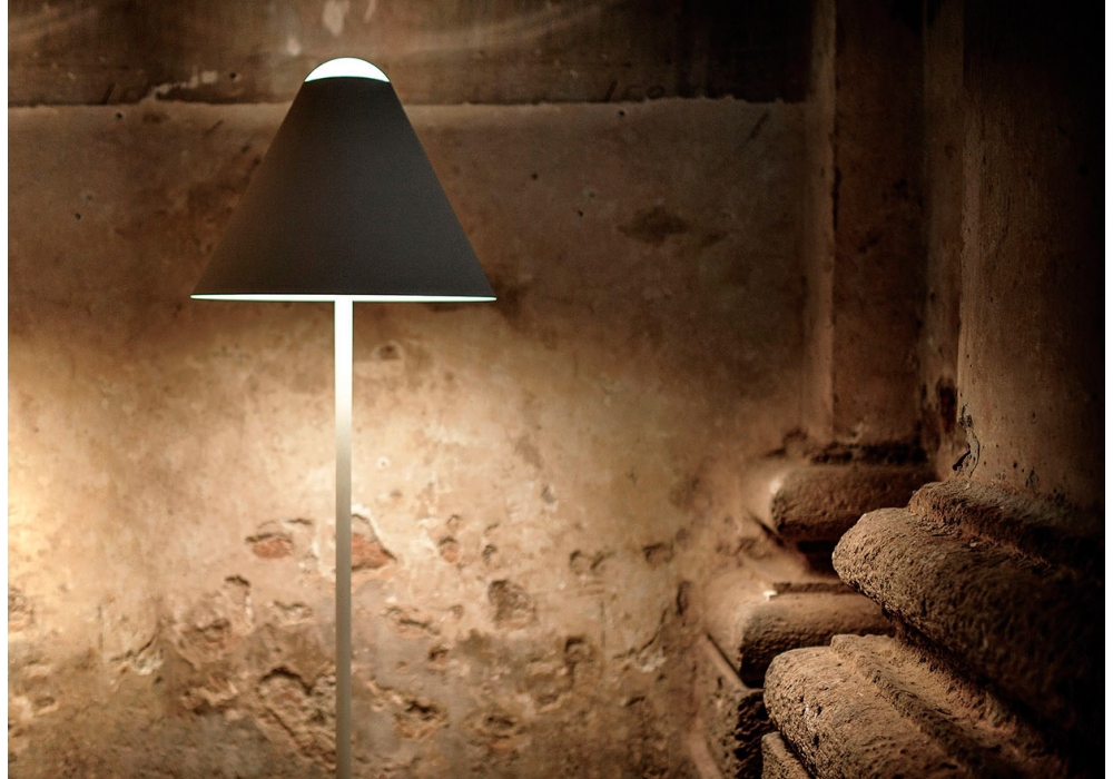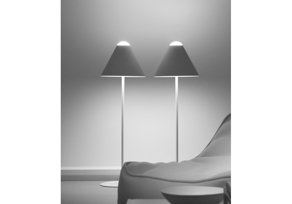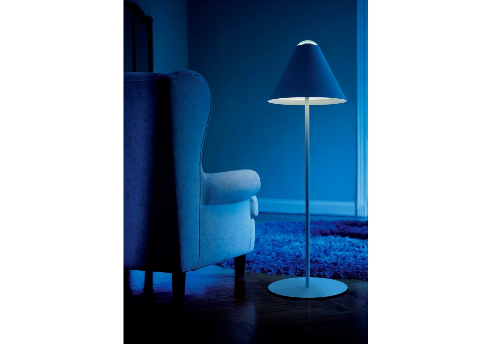 Aba 120 di Omar Carraglia per Davide Groppi è una lampada da terra con con base circolare e stelo verticale in metallo verniciato bianco. Il Paralume è in metacrilato e scherma una sorgente luminosa con innesto E27 di tipo LED con dimmer su cavo di alimentazione.