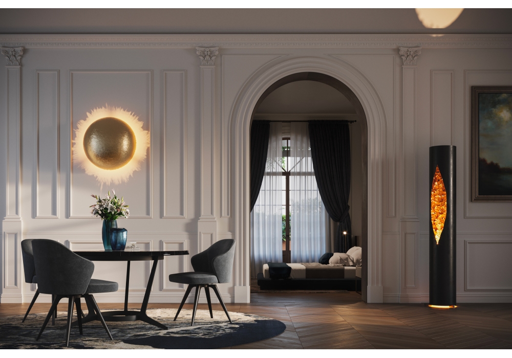 Colonna firmata da Enzo Catellani per Catellani&Smith è una lampada da terra, costituita da un tubo in ferro grezzo cerato e una lampadina a LED, con dimmer da terra (memory last step). Disponibile in tre finiture.