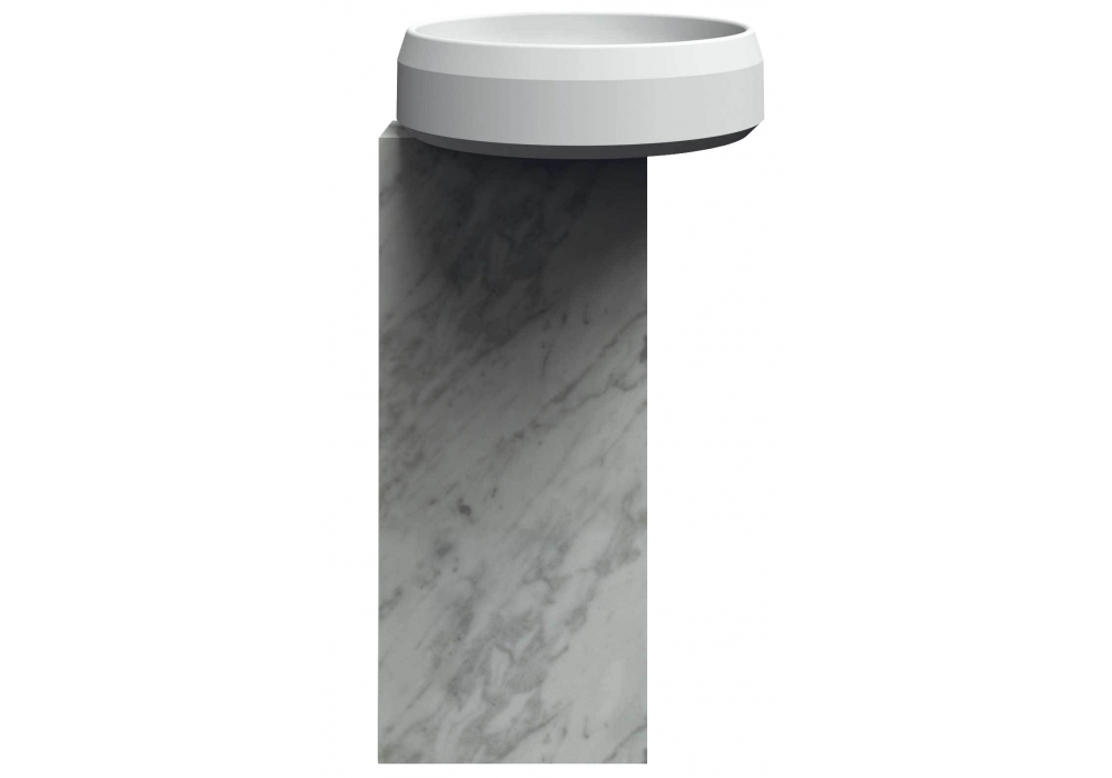 Lariana firmato da Patricia Urquiola per Agape è un lavabo a colonna in Cristalplant® biobased o marmo, con lavabo a destra o a sinistra e predisposto per scarico a parete o per posizionamento ad isola. Nella versione con scarico a pavimento è obbligatorio l’inserimento del sifone. Disponibile in differenti finiture.