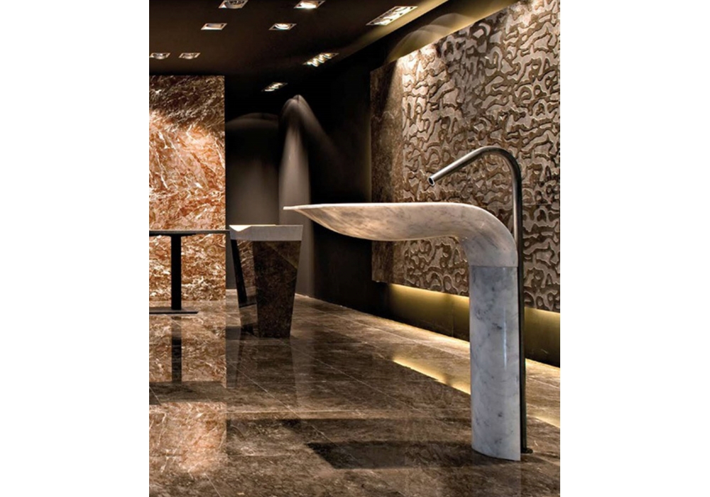 Ciuri firmato da Marco Piva per Lithea è un lavabo a colonna realizzato in marmo, disponibile in 2 finiture.