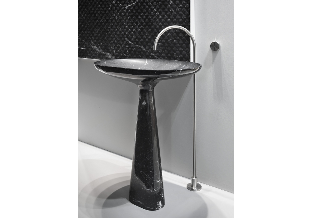 Salina firmato da Marco Piva per Lithea è un lavabo a colonna realizzato in marmo, disponibile in diverse finiture.