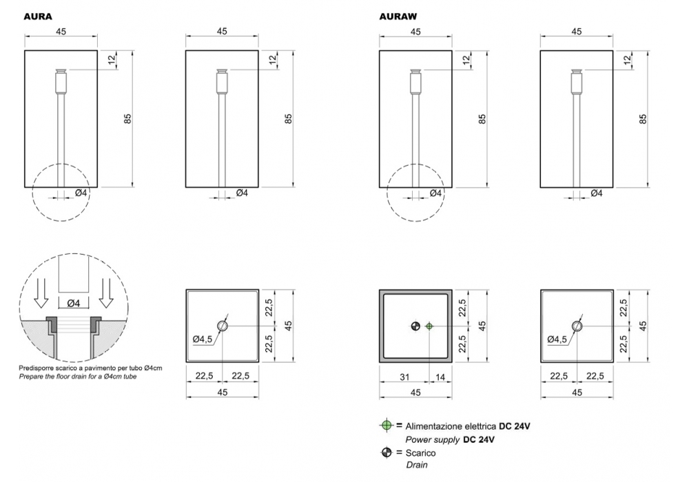 | Dimensioni | Astro_ 50 x 45 x H 85 cm; Aura_ 45 x 45 x H 85 cm. |