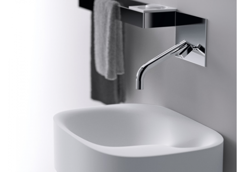 Nivis firmato da Andrea Morgante (Shiro Studio) per Agape è un lavabo rettangolare in Cristalplant® biobased a parete con foro per troppo pieno ricavato in un piccolo invaso collegato al bacino principale, che ha anche funzione di portasapone. Disponibile nella versione con o senza foro per rubinetto.