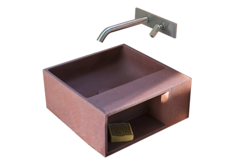 Handwash Outdoor firmato da Benedini Associati per Agape è un lavabo squadrato da esterno realizzato in Cementoskin® in differenti finiture. Dotato di vano porta oggetti laterale. A scarico libero. É fornito senza foro per rubinetto. Piletta completa di calotta in tinta inclusa.