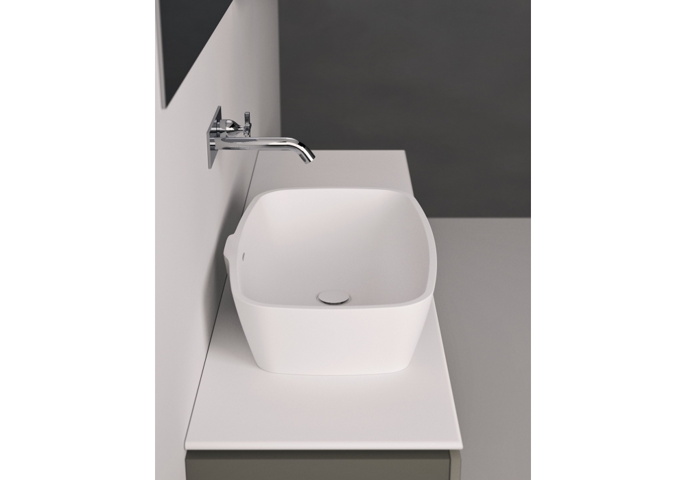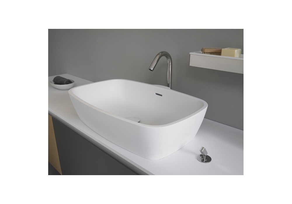 Normal firmato da Benedini Associati per Agape è un lavabo d’appoggio sagomato in Cristalplant® biobased o in marmo in differenti finiture. Senza foro per rubinetto, con foro per troppo pieno. Utilizza piletta.