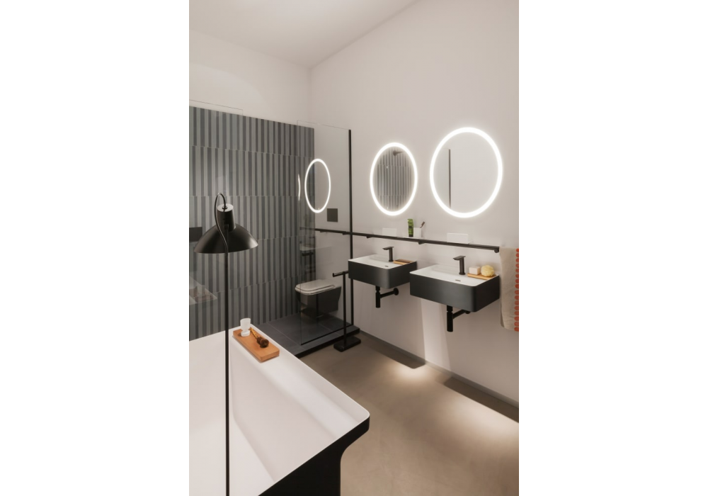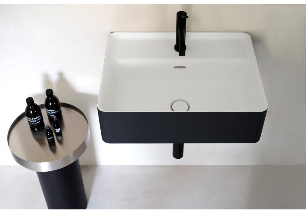 Marsiglia firmato da Lucidi Pevere per Agape è un lavabo da appoggio o da parete realizzato in Cristalplant® biobased in differnti finiture. Completo di piletta Cristalplant® con calotta sagomata. Disponibile senza foro per rubinetto, con foro per monocomando o per gruppo a tre fori. Possibilità di avere un vassoio in legno di iroko.
