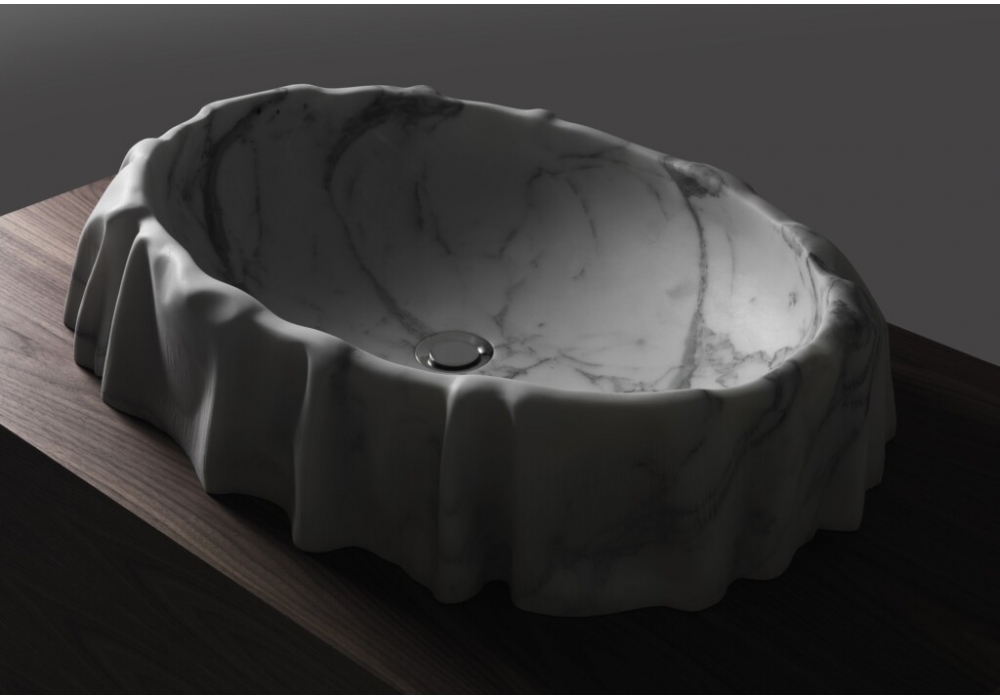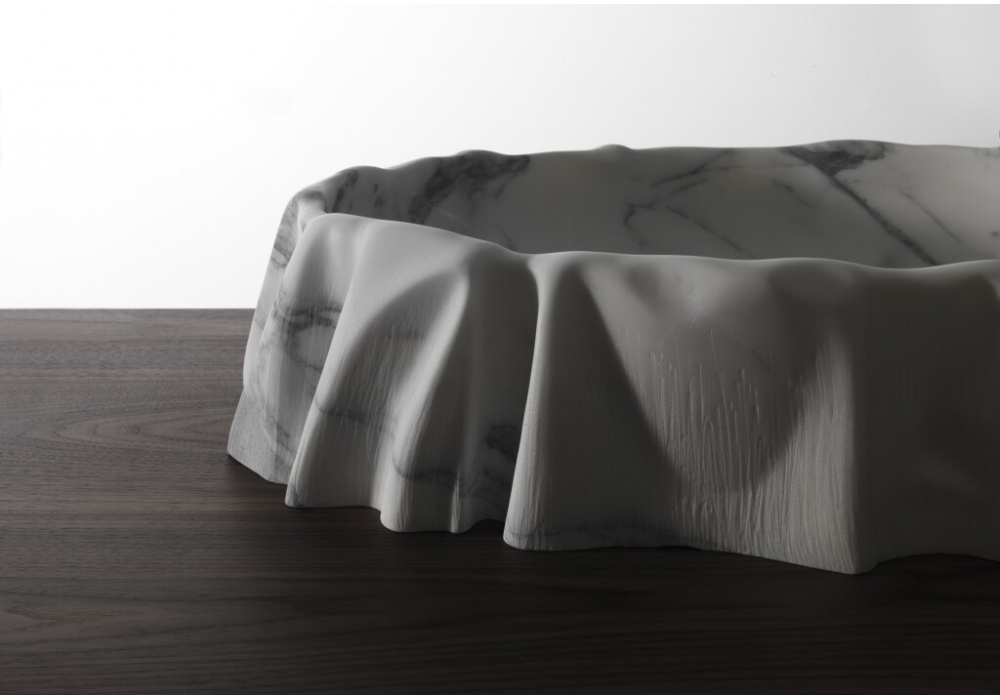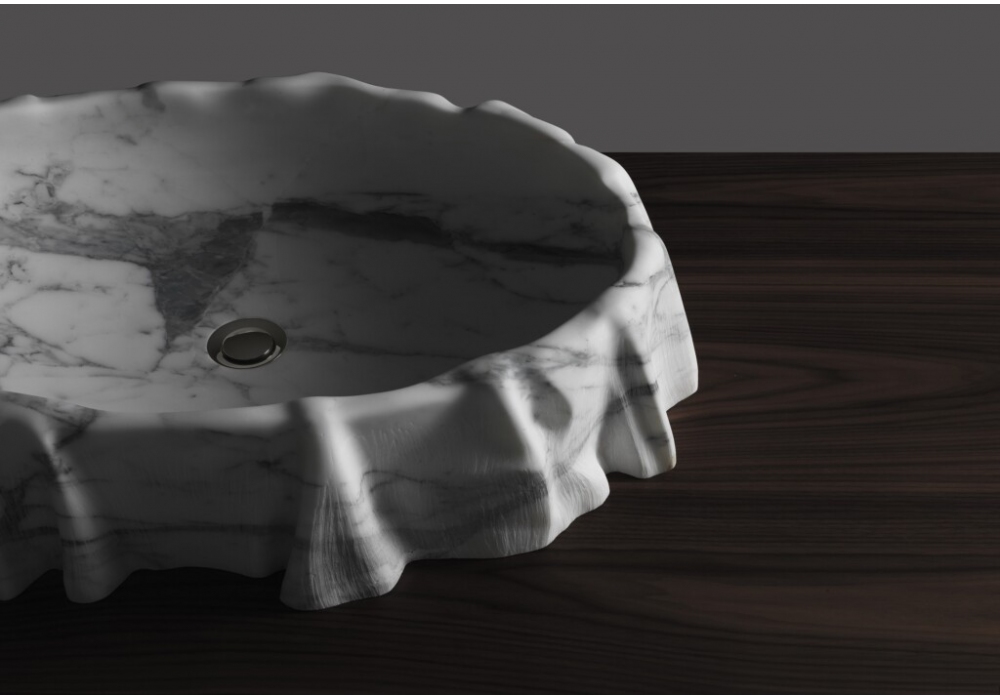 Nami firmato da Enzo Berti per Kreoo è un lavabo realizzato in marmo. Per realizzarlo è stato impiegato un velluto drappeggiato, posato su una ciotola ovale, sottoposto a scansione 3D e trasformato in un’immagine digitale. Disponibile in differenit finiture.