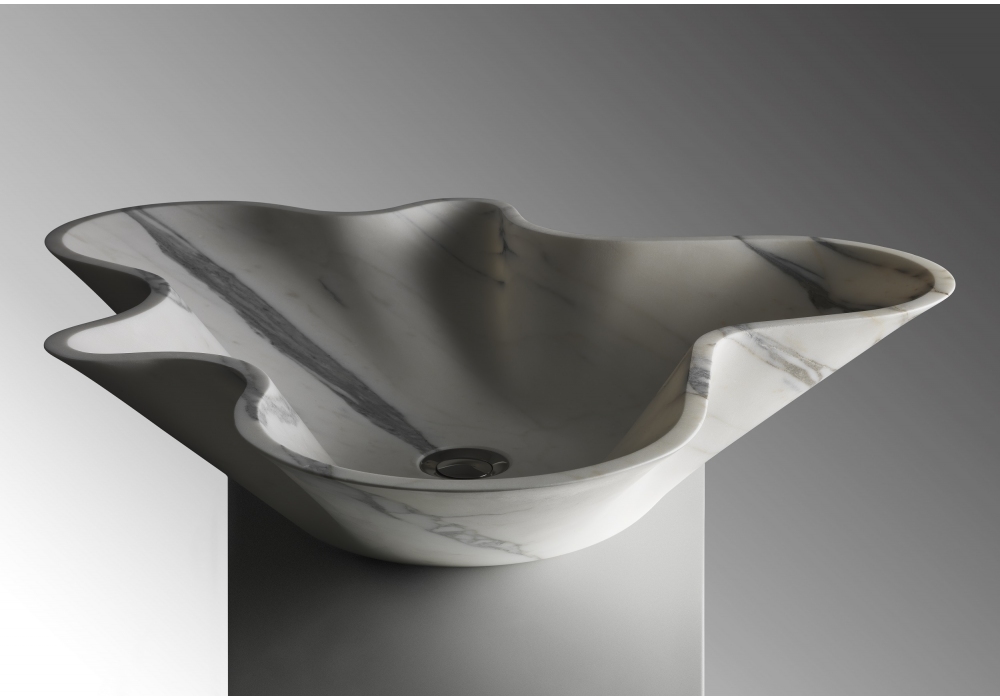 Bowl N° 1 firmato da Enzo Berti per Kreoo è un lavabo dalla forma ondulata realizzato interamente in marmo. Disponibile in diverse finiture.