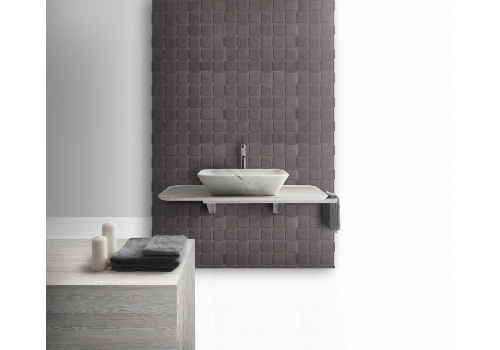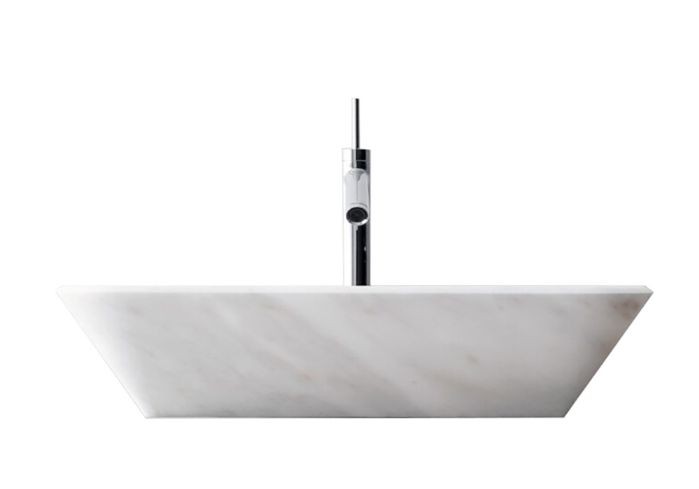 Bowl N° 8 firmato da Enzo Berti per Kreoo è un lavabo dalla forma rettangolare con orientamento piramidale e angoli smussati. Realizzato in marmo. Piletta click clack in diverse finiture. É disponibile l'interno della vasca anche in foglia oro o argento oppure nella gamma di colori RAL.
