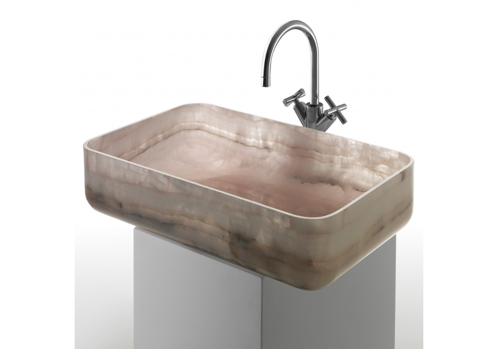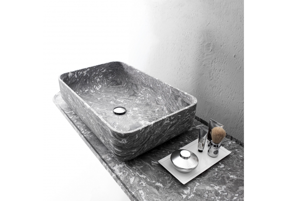 Bowl N° 9 firmato da Enzo Berti per Kreoo è un lavabo dalla forma rettangolare con bordi e spigoli arrotondati realizzato in marmo. Piletta click clack cromata, oro bronzato o in marmo in tinta. É possibile personalizzare l'interno del lavabo con finiture in foglia o nella gamma dei colori RAL.