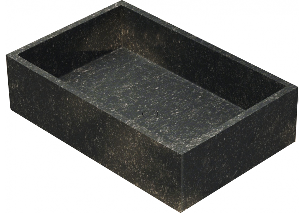 Carrara Outdoor firmato da Benedini Associati per Agape è un lavabo d'appoggio rettangolare realizzato in marmo Petit Granit; a scarico libero. Piletta completa di calotta in tinta inclusa.