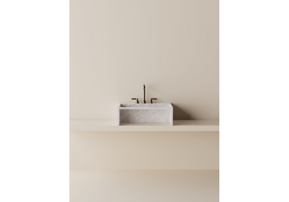 Face à face firmato da Jean Nouvel per Agape è un lavabo d'appoggio realizzato con lastre di marmo in varie lunghezze e finiture. A scarico libero e completo di piletta e kit di fissaggio.