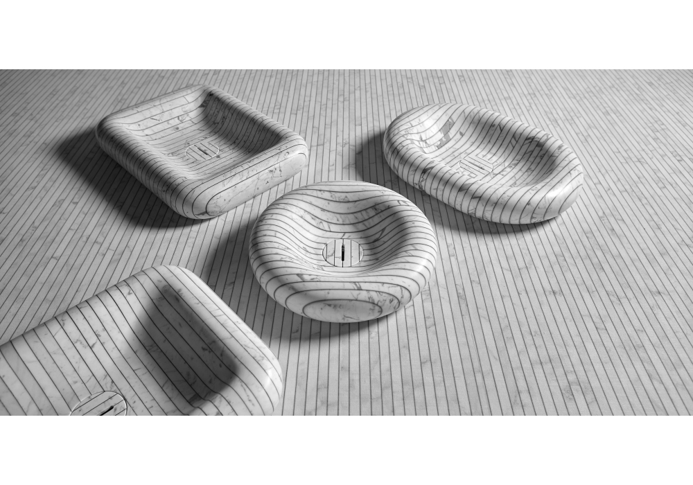 Gessati firmato da Gumdesign per Antonio Lupi è un lavabo soprapiano in pietra, completo di piletta con scarico libero e raccordo per sifone.