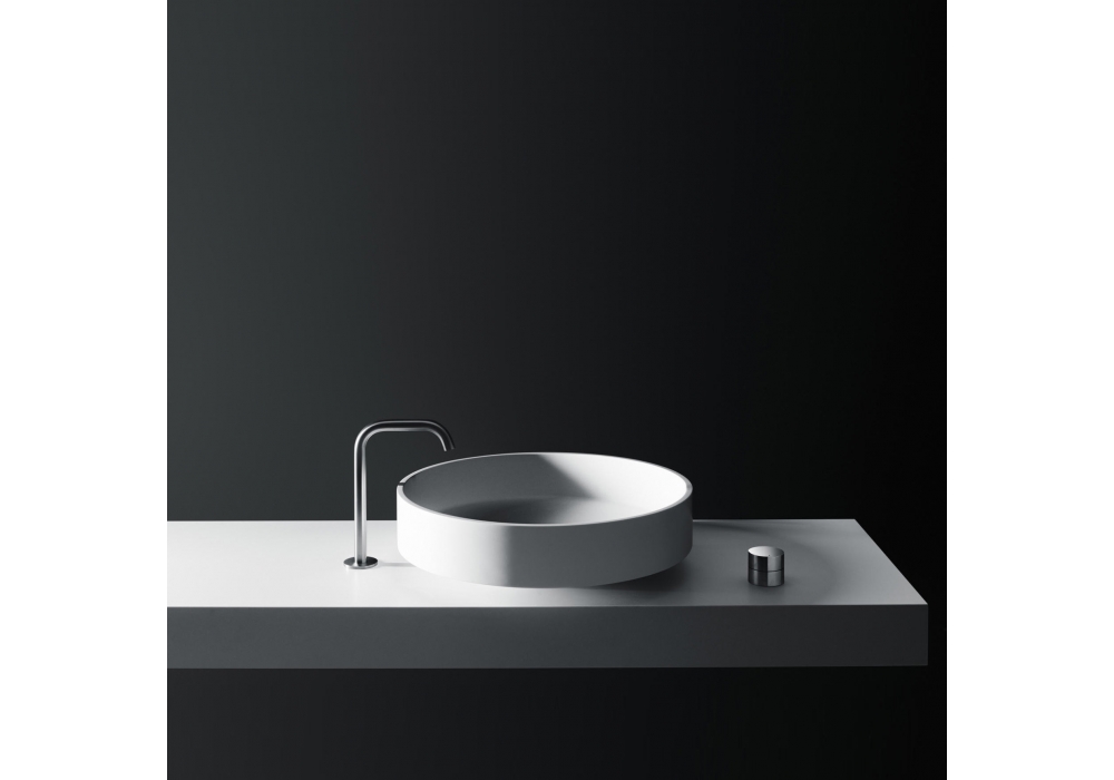 Lotus firmato da Naoto Fukasawa per Boffi è un lavabo da appoggio, senza foro per troppo pieno. Realizzato in Cristalplant® bianco opaco.