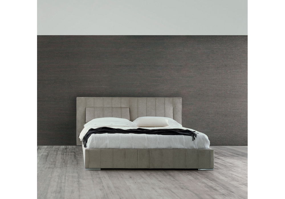 High-Wave firmato da Hannes Wettstein per Molteni&C è un letto imbottito con contenitore dalla forma classica e dalle misurate proporzioni, arricchito dalla cordonatura verticale del rivestimento della testata. Nella versione con meccanismo la parte interna della testata può inclinarsi per fornire un appoggio modulabile. Il letto, grazie ai traversi che collegano le guide, può ricevere reti intere o divise e l’altezza delle stesse può essere regolata. Rivestimento in tessuto o in pelle.