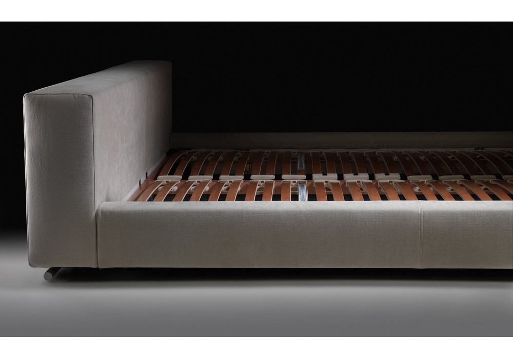 Groundpiece è un letto disegnato da Antonio Citterio per Flexform. Base con pianale rete a doghe in legno. Testata: in legno con imbottitura in poliuretano rivestito in tessuto protettivo accoppiato. Piedi: in metallo verniciato con polveri epossidiche. Rivestimenti: in tessuto o pelle sfoderabili. Materasso non incluso.