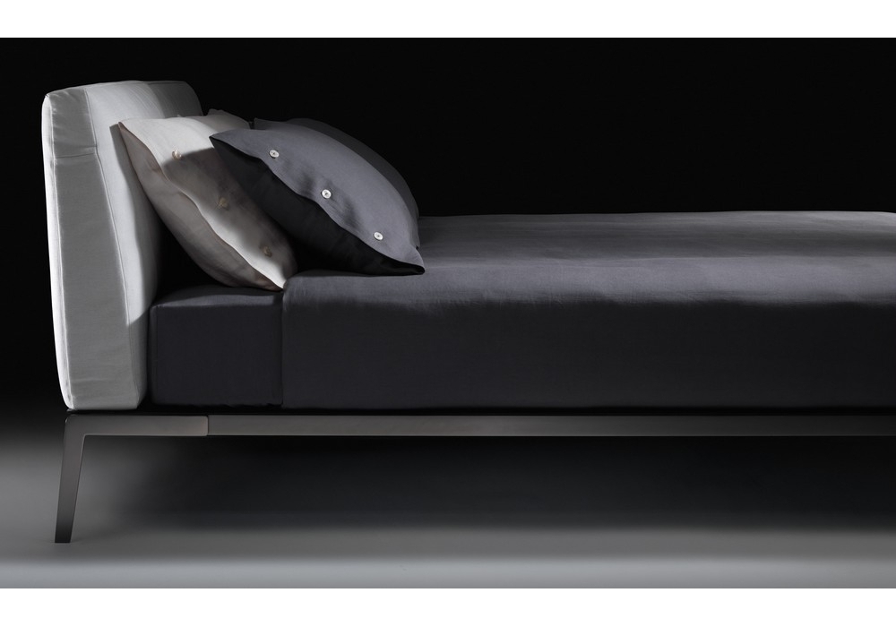 Lifesteel è un letto disegnato da Antonio Citterio per Flexform. Base: telaio in metallo rivestito in cuoio. Pianale: in legno con imbottitura in poliuretano rivestito in tessuto protettivo . Testata: inserto in metallo con imbottitura in poliuretano e dacron rivestito in tessuto protettivo accoppiato. Piedi: in metallo. Materasso non incluso.