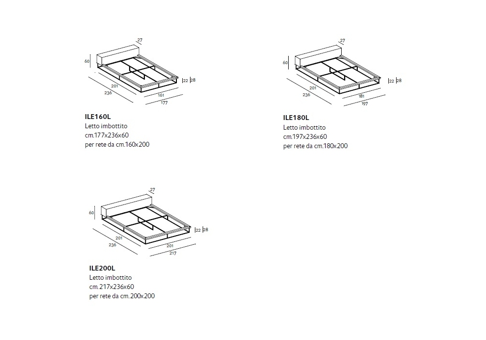 | Dimensioni materasso | 160 x 200 cm; 180 x 200 cm; 200 x 200 cm. |