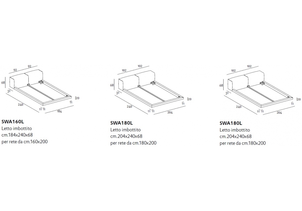 | Dimensioni | 160 x 200 cm; 180 x 200 cm; 200 x 200 cm. |