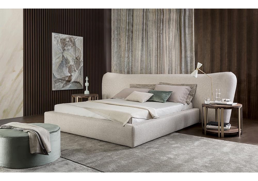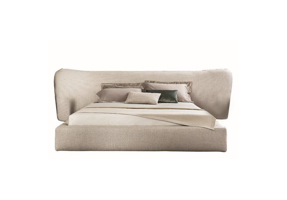 Royale firmato da Castello Lagravinese Studio per Casamilano è un letto con testata in massello di abete, multistrato di pino e MDF. Base in pannelli di particelle di legno, imbottitura in poliuretano espanso e rivestimento fisso in differenti tessuti o pelli.