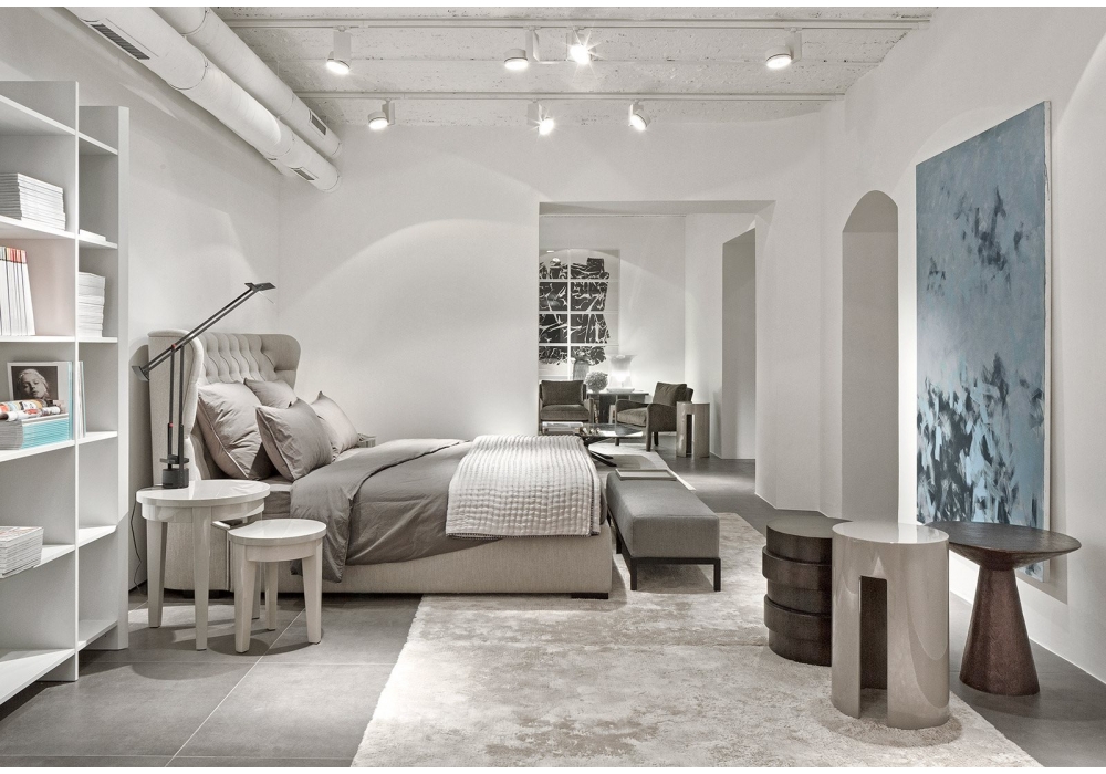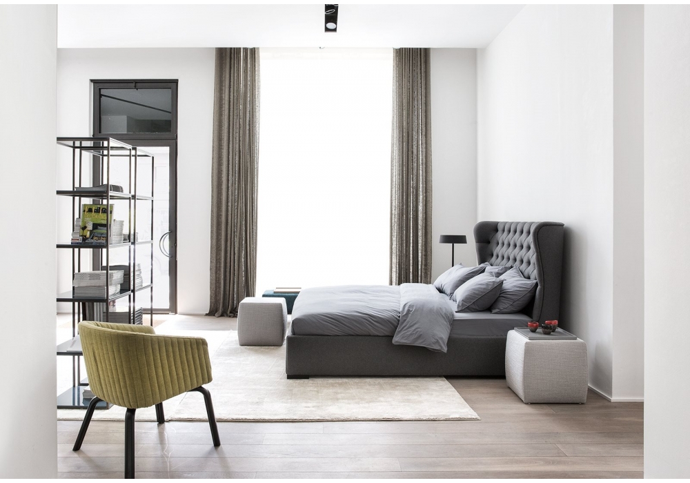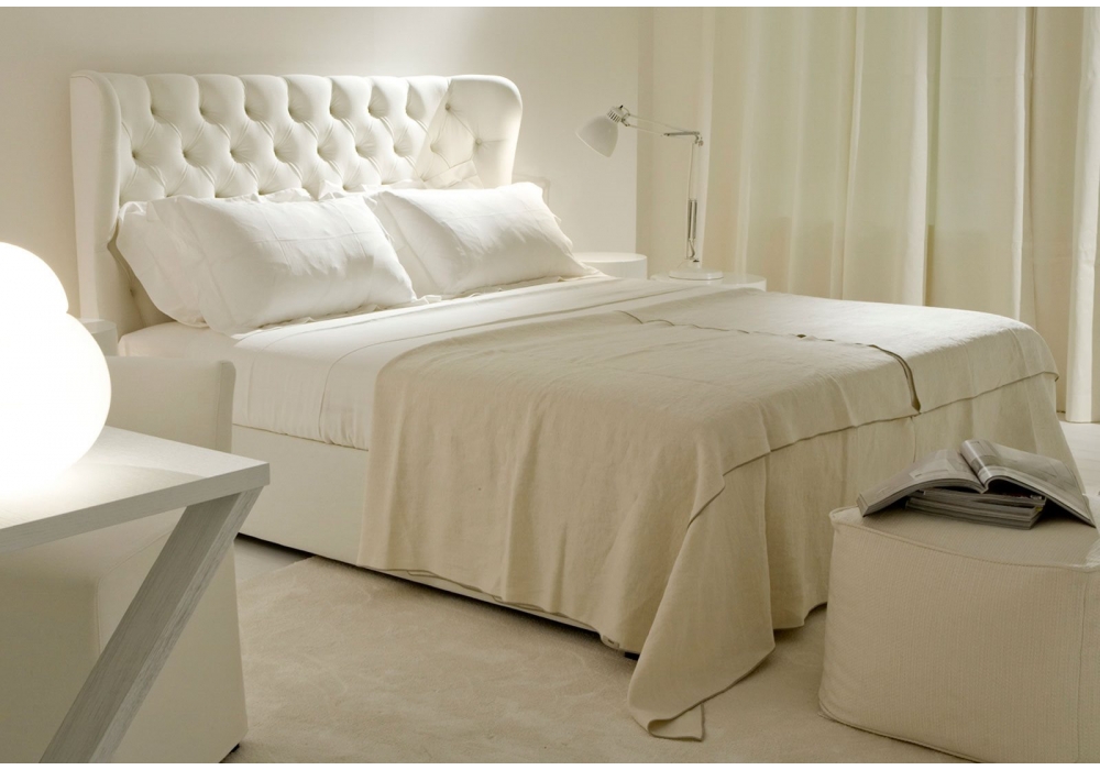 Lauren firmato da Andrea Parisio per Meridiani è un letto tessile imbottito con rivestimento testiera con lavorazione capitonné, non sfoderabile. Struttura smontabile in legno con traverso centrale in metallo. Piedini in legno tinto black, light e almond.