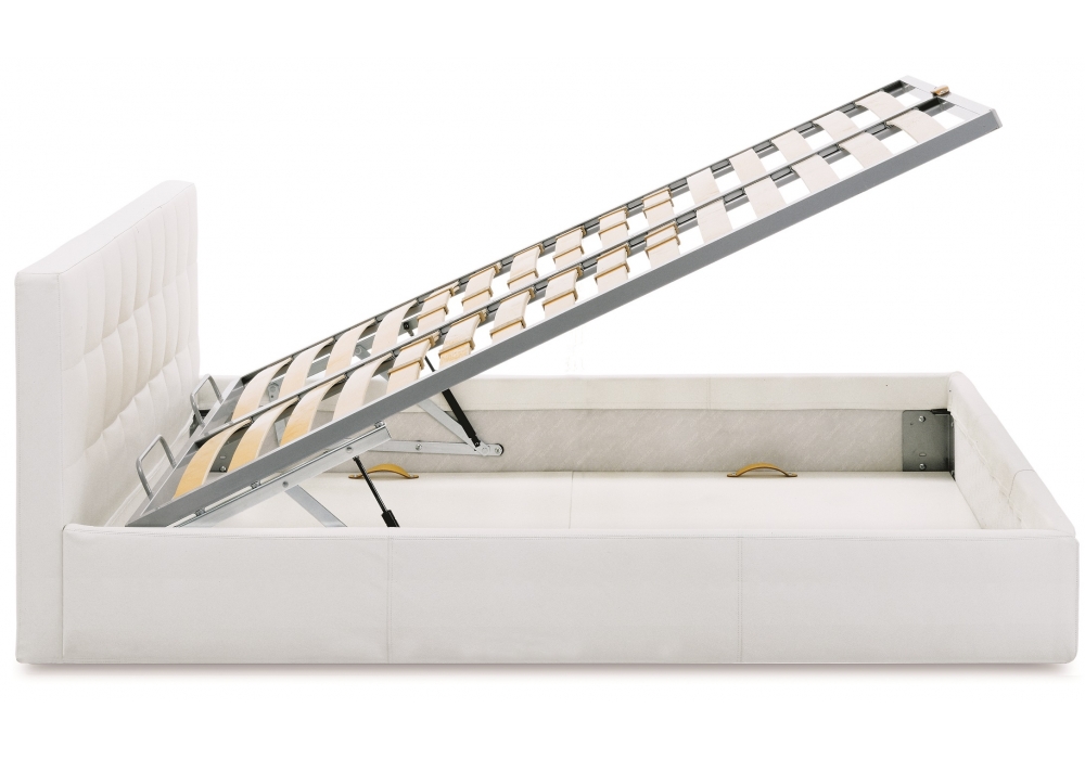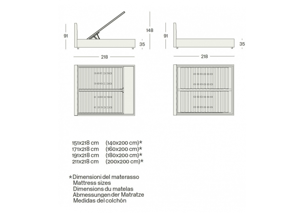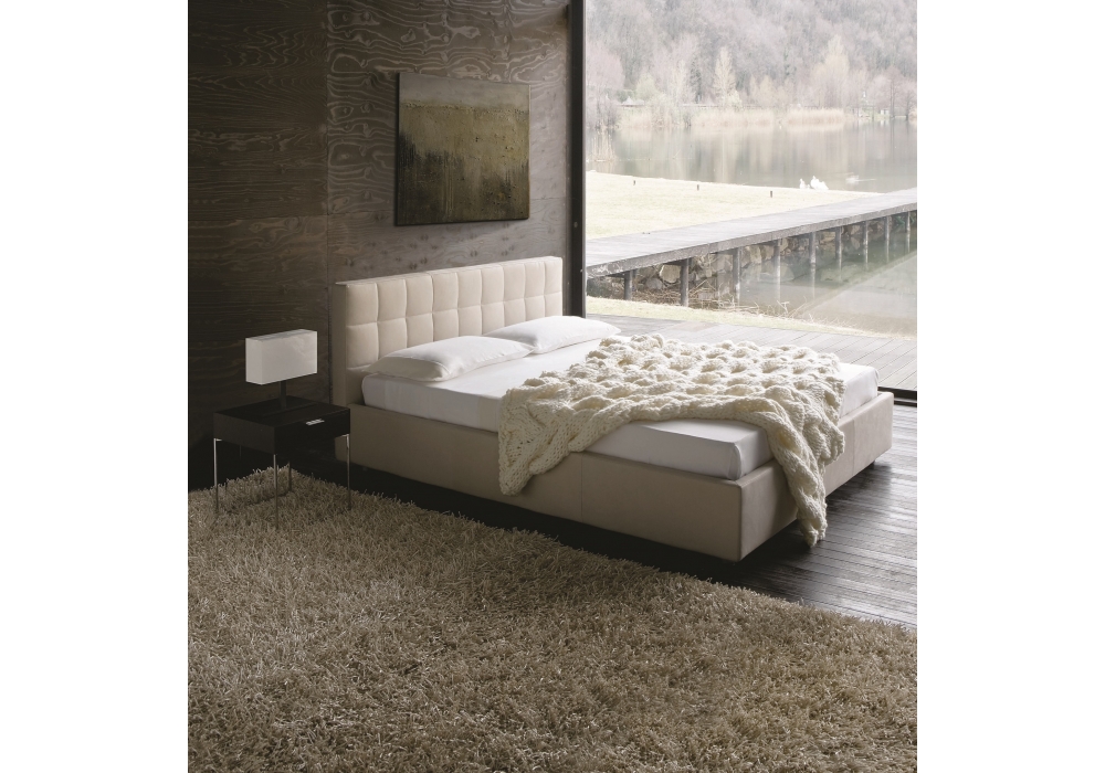 Box firmato da Emaf Progetti per Zanotta è un letto senza o con vano contenitore, al quale si accede alzando il materasso tramite un meccanismo. Struttura in acciaio. Molleggio in doghe di faggio curvato con regolatori di rigidità. Testiera e base imbottite in poliuretano/ fibra poliestere termolegata. Rivestimento trapuntato, sfoderabile, in stoffa o in pelle.