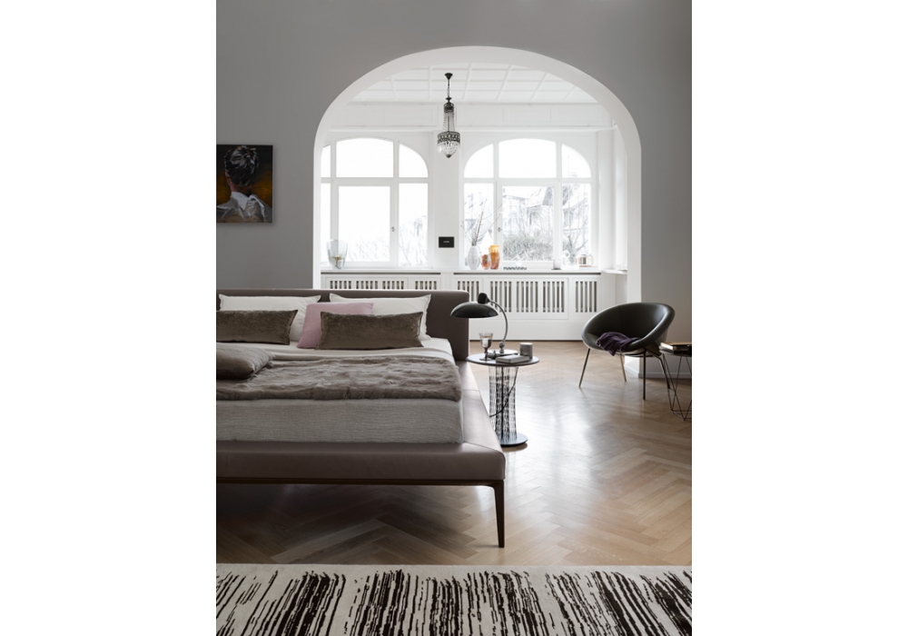 Jaan firmato da Eoos per Walter Knoll è un bellissimo letto con base in alluminio verniciato a polvere disponibile in 2 diverse finiture, testata e struttura rivestiti con tessuti naturali o pelli. Disponibile anche in diverse dimensioni. Pattini sintetici. Materasso non incluso.
