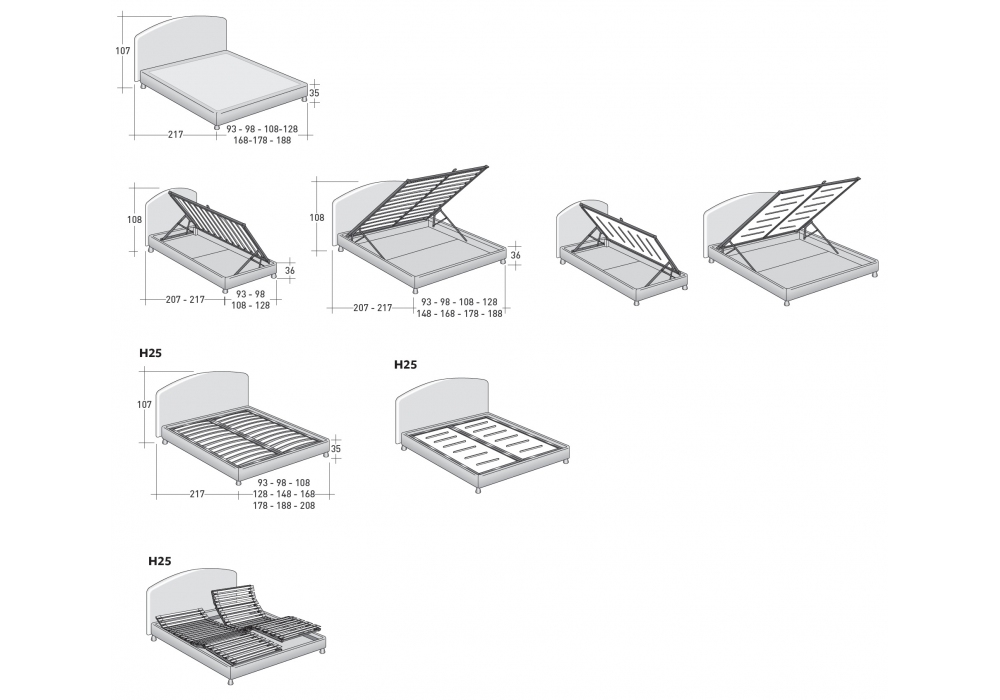 | Dimensioni materasso | 85 x 200 cm; 90 x 200 cm; 100 x 200 cm; 160 x 200 cm; 170 x 200 cm; 180 x 200 cm. |