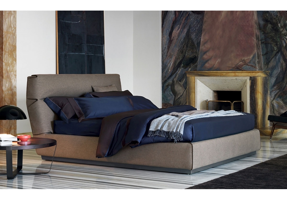 Gentleman firmato da Carlo Colombo per Flou è un letto matrimoniale, dalla linea importante disponibile con testata alta o testata bassa. A imprimergli un carattere di sicura eleganza è la particolarità del rivestimento che prevede una seconda copertura amovibile imbottita per la testata. Ulteriore elemento di preziosità è il cordonetto lungo gli angoli della base e lungo il perimetro della seconda copertura, che può essere tono su tono o a contrasto. Il rivestimento della struttura del letto è sfoderabile, la copertura superiore della testata, fissata con ganci, è amovibile. Entrambi possono essere rivestiti in tessuto o pelle. Gentleman può essere fornito con base contenitore o base fissa.