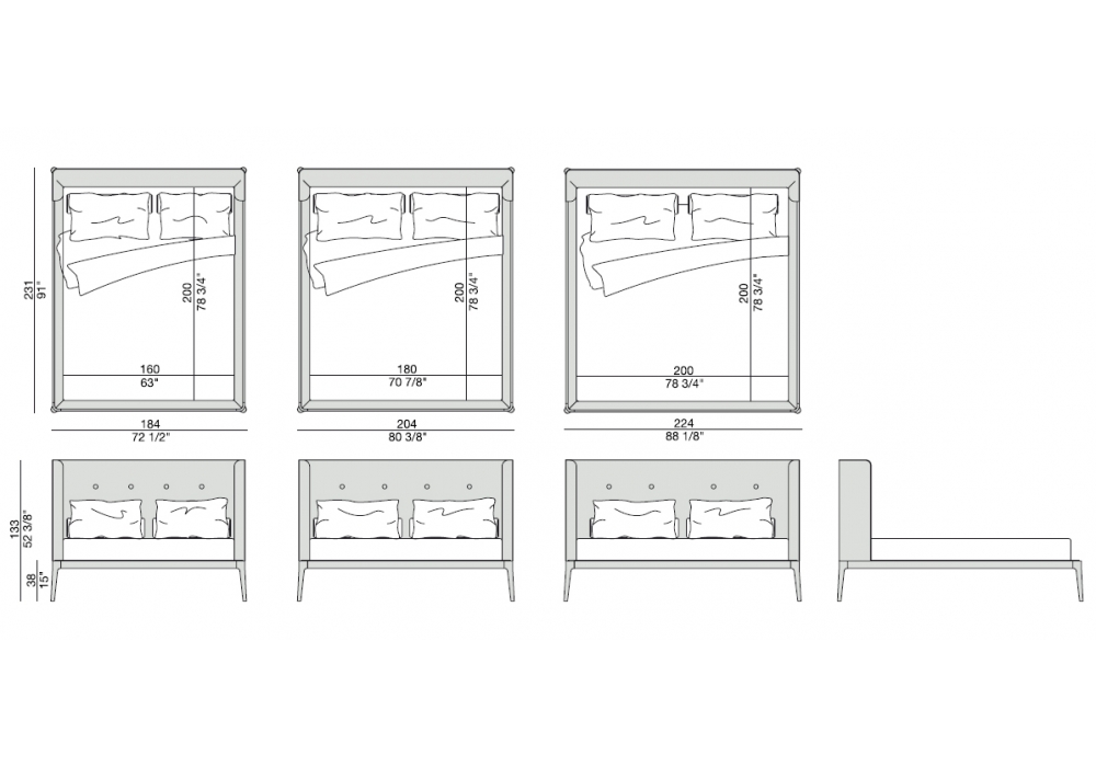 Ziggy Bed firmato da Carlo Ballabio per Porada è un letto con struttura in noce canaletta disponibile in diverse finiture. Rivestimento della testata e dell' inserto giroletto in pelle o tessuto. Rete a doghe in legno inclusa. Materasso non incluso.