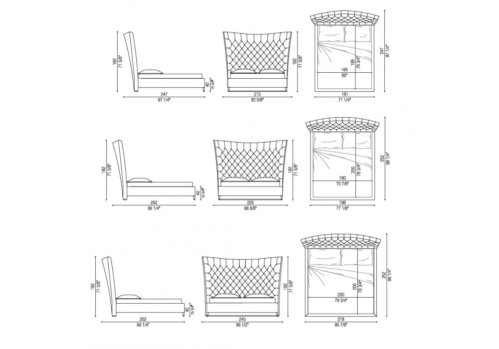| Dimensioni materasso | 165 x 195 cm; 180 x 200 cm; 200 x 200 cm. |