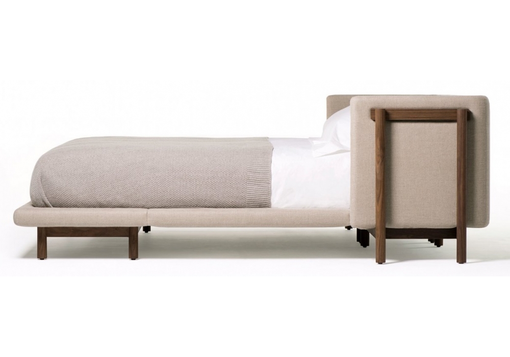 Frame firmato da Neri & Hu per De La Espada è un letto con testata e giroletto rivestiti in tessuto o pelle e struttura in legno disponibile in diverse finiture. Disponibile anche in varie dimensioni e 2 versioni: standard o testata con braccioli. Materasso non incluso!