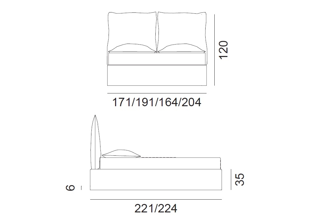 | Dimensioni materasso | 160 x 200 cm; 180 x 200 cm; 153 x 203 cm; 193 x 203 cm. |