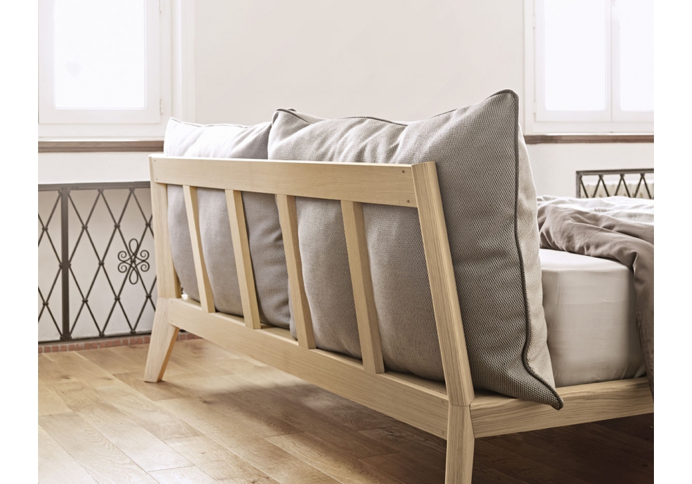 Bora firmato da Ibon Arrizabalaga per Treku è un letto con la struttura in legno in diverse finiture, i cuscini sono rimovibili in tessuto o pelle. Disponibile per diversi dimensioni del materasso. Rete e materasso non inclusi.