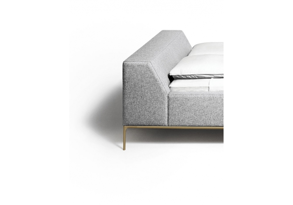 Time Trip for Memories firmato da Time & Style per DePadova è un letto realizzato con piedini e traversi in alluminio verniciato color ottone o ottone brunito, rivestimento fisso in tessuto o in pelle. Disponibile in diverse finiture e dimensioni.