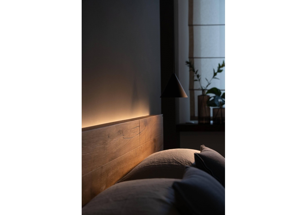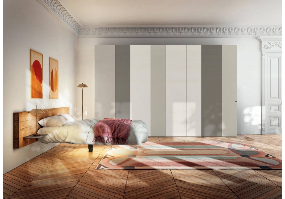 Fluttua firmato da Daniele Lago è un letto sospeso su un unico perno centrale. La testiera è in legno nelle finiture Wildwood, Agewood o Haywood. Il letto è regolabile in altezza prima di essere fissato alla parete. Disponibile in diverse finiture e dimensioni.