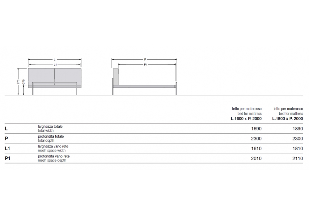 | Dimensioni | • 169 x 230 x H 97 cm; • 189 x 230 x H 97 cm |